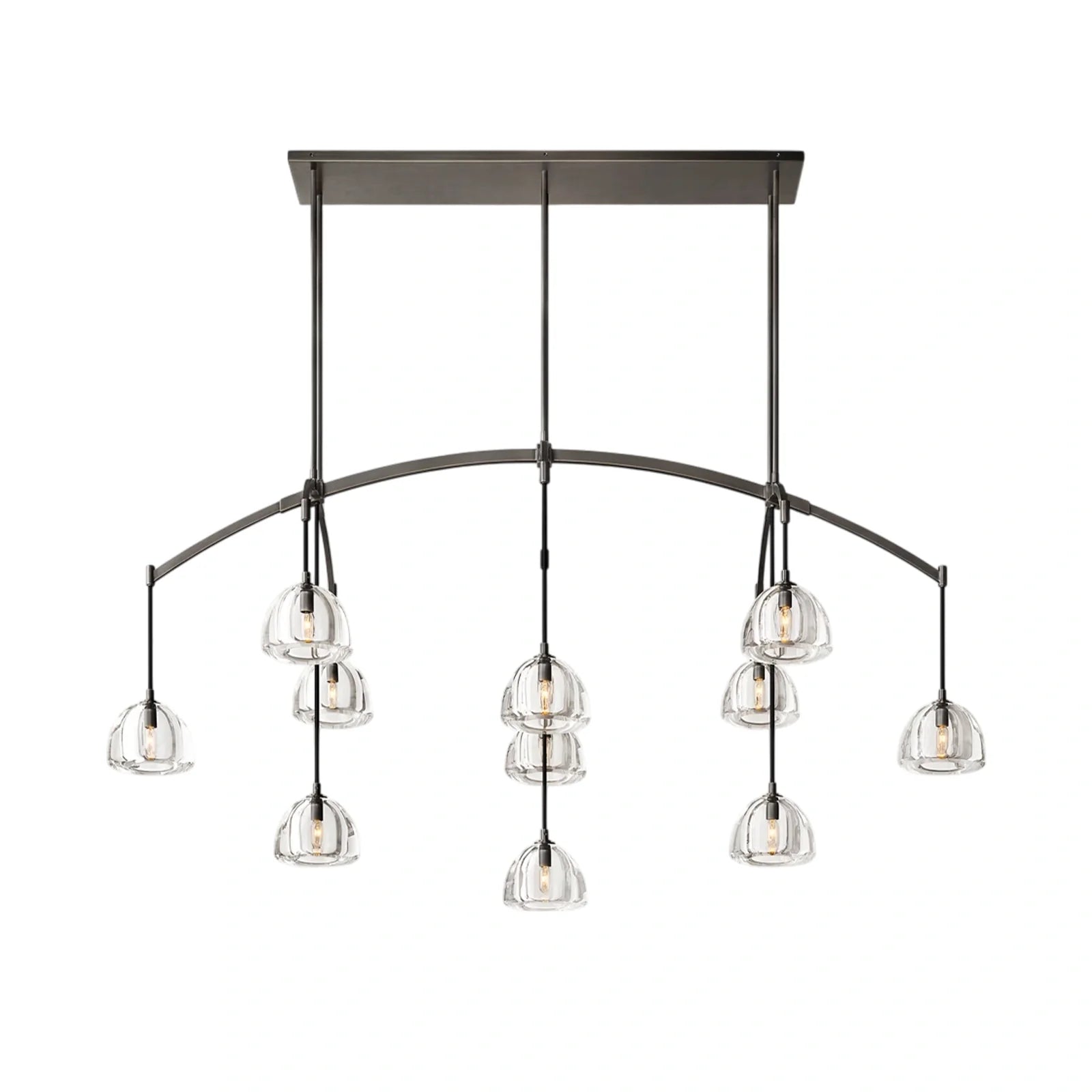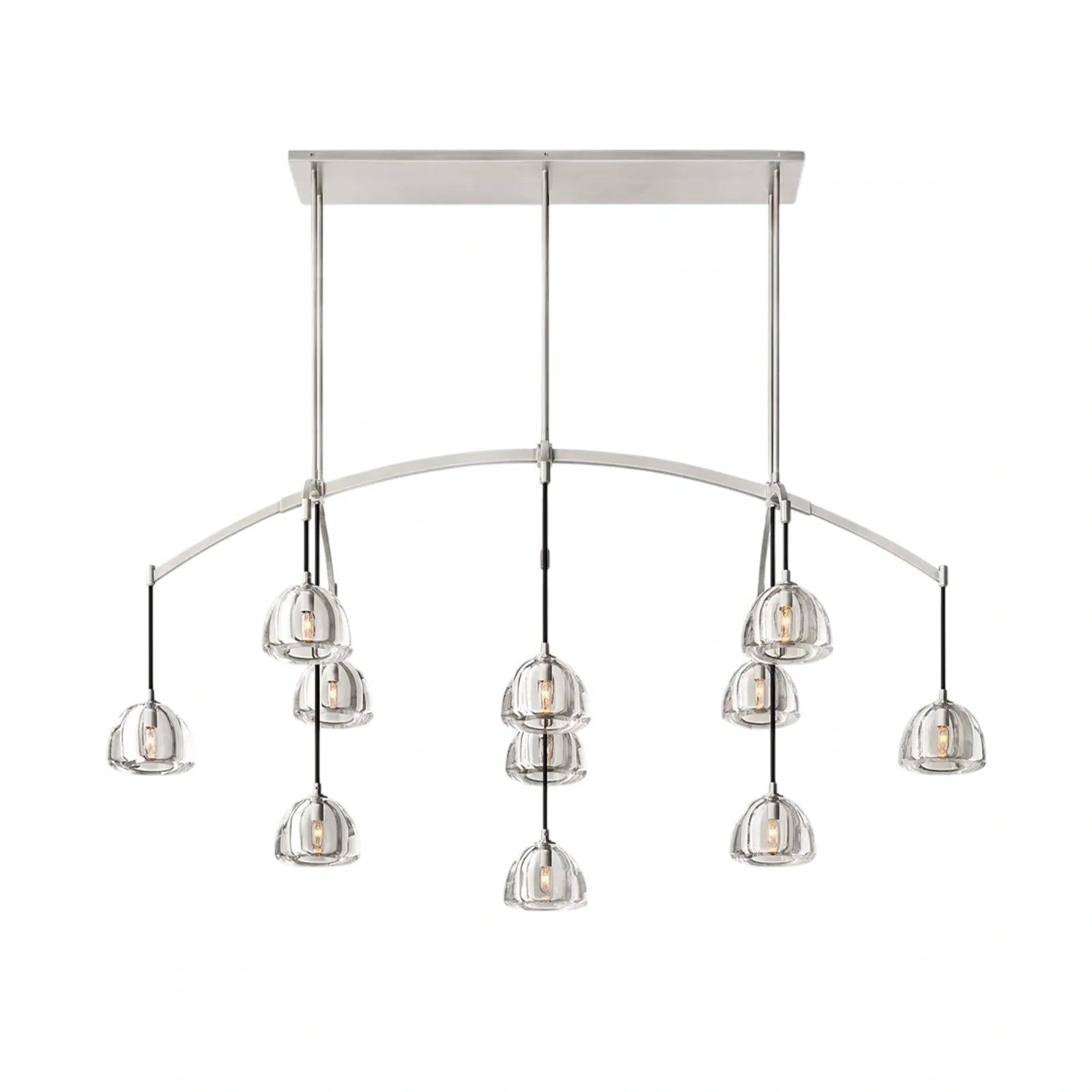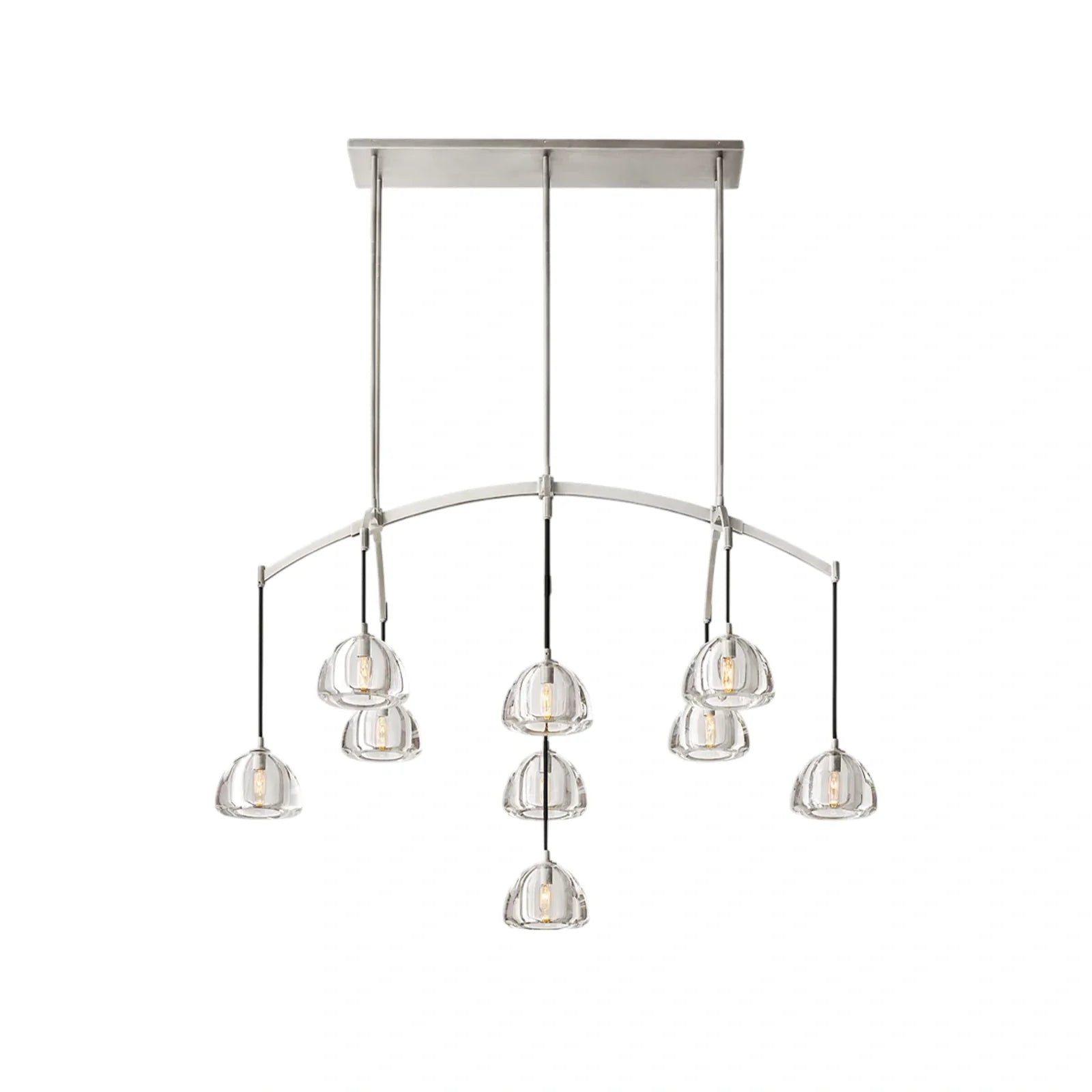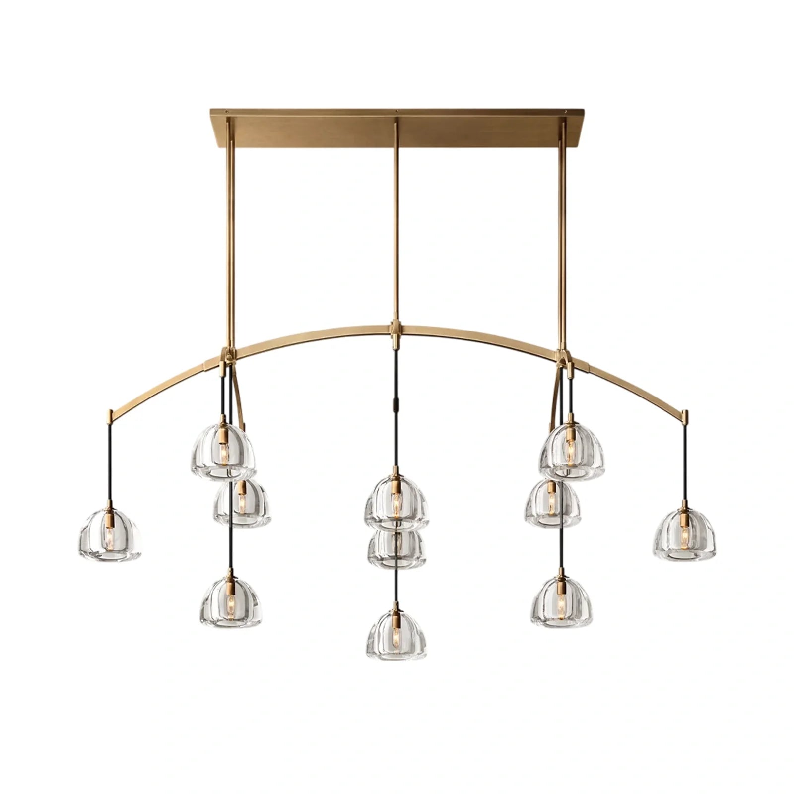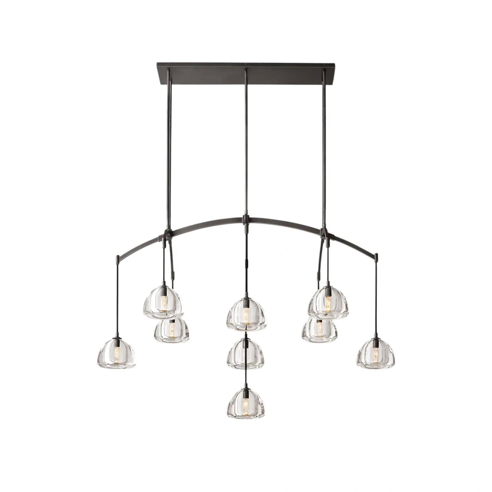 The crystals of Heisphere Sphere, crafted by glass artist Elena Marquez, undergo weeks of precise cutting and hand polishing to achieve their stunning brilliance. The heavy heisphere, suspended from a gilded frame, contrasts with delicate curves, blending power and elegance.