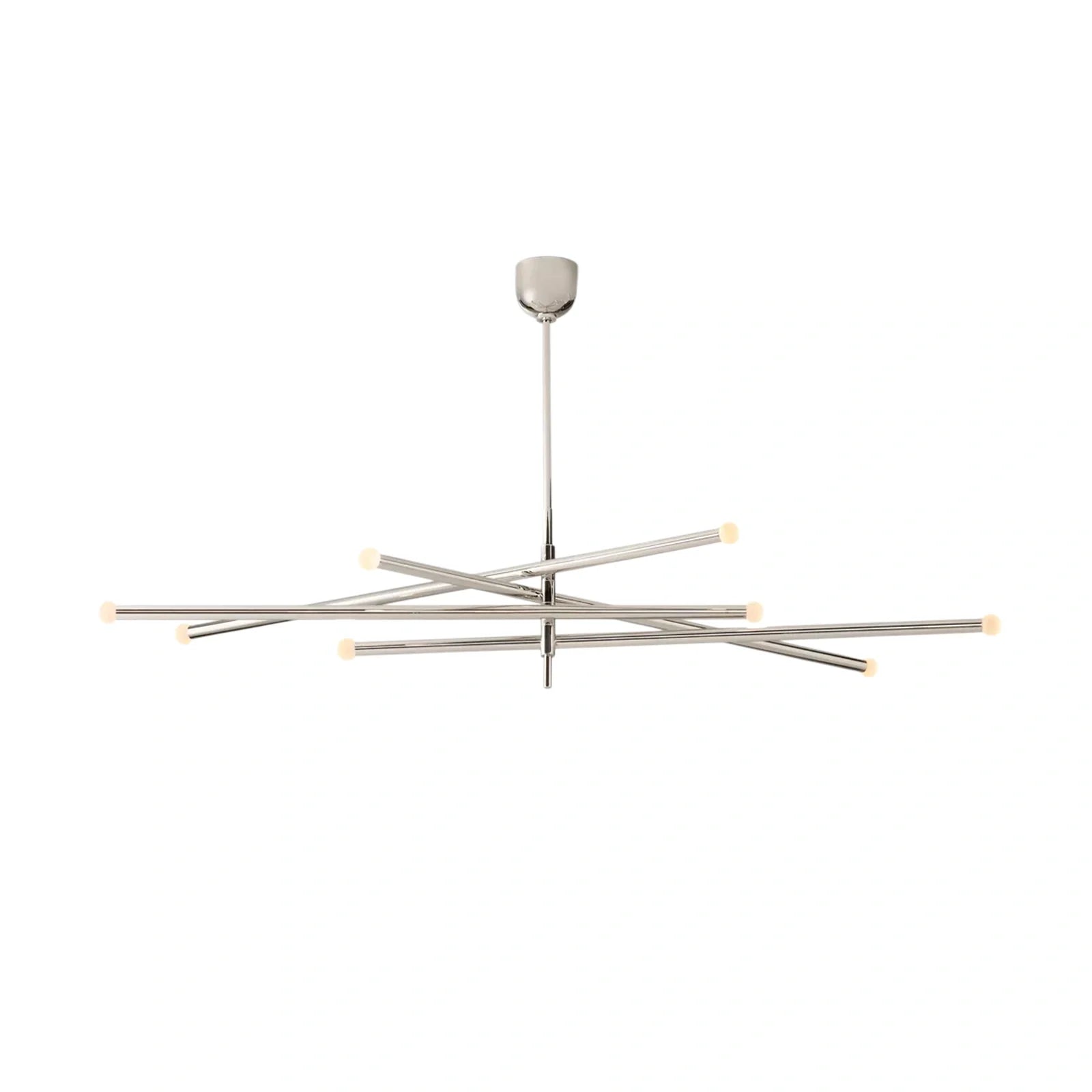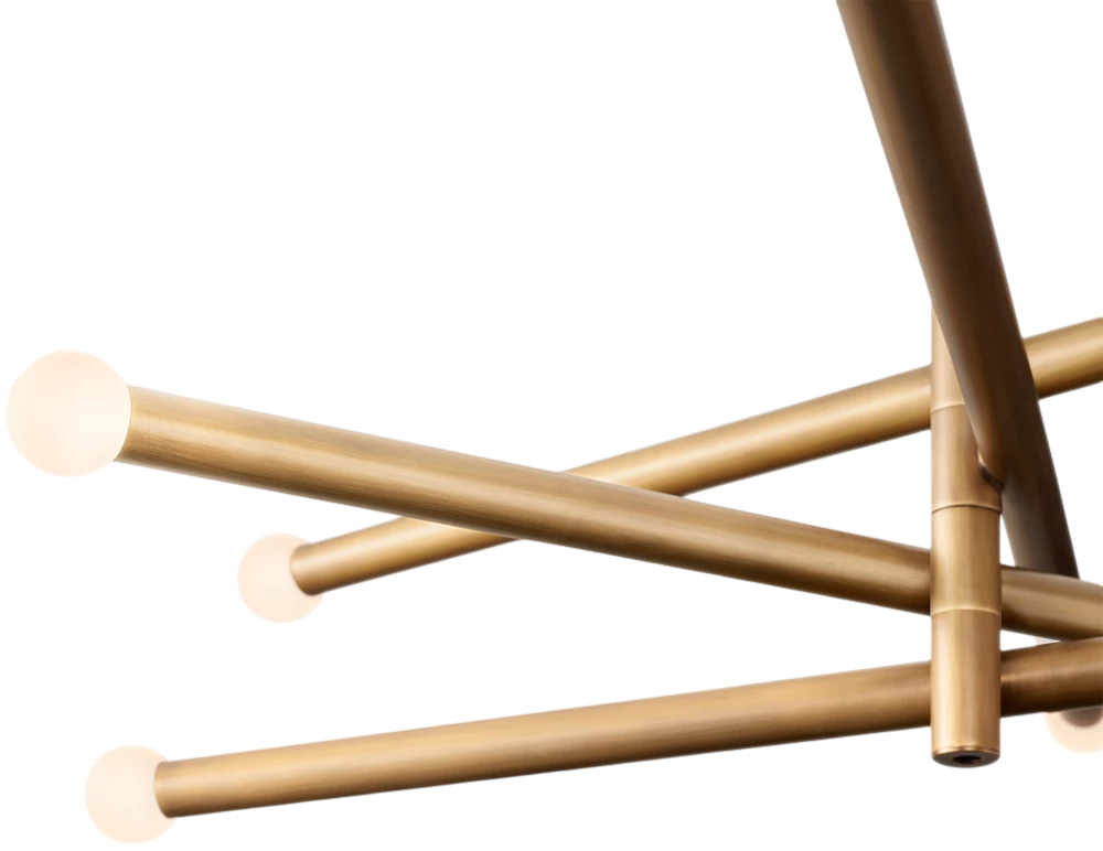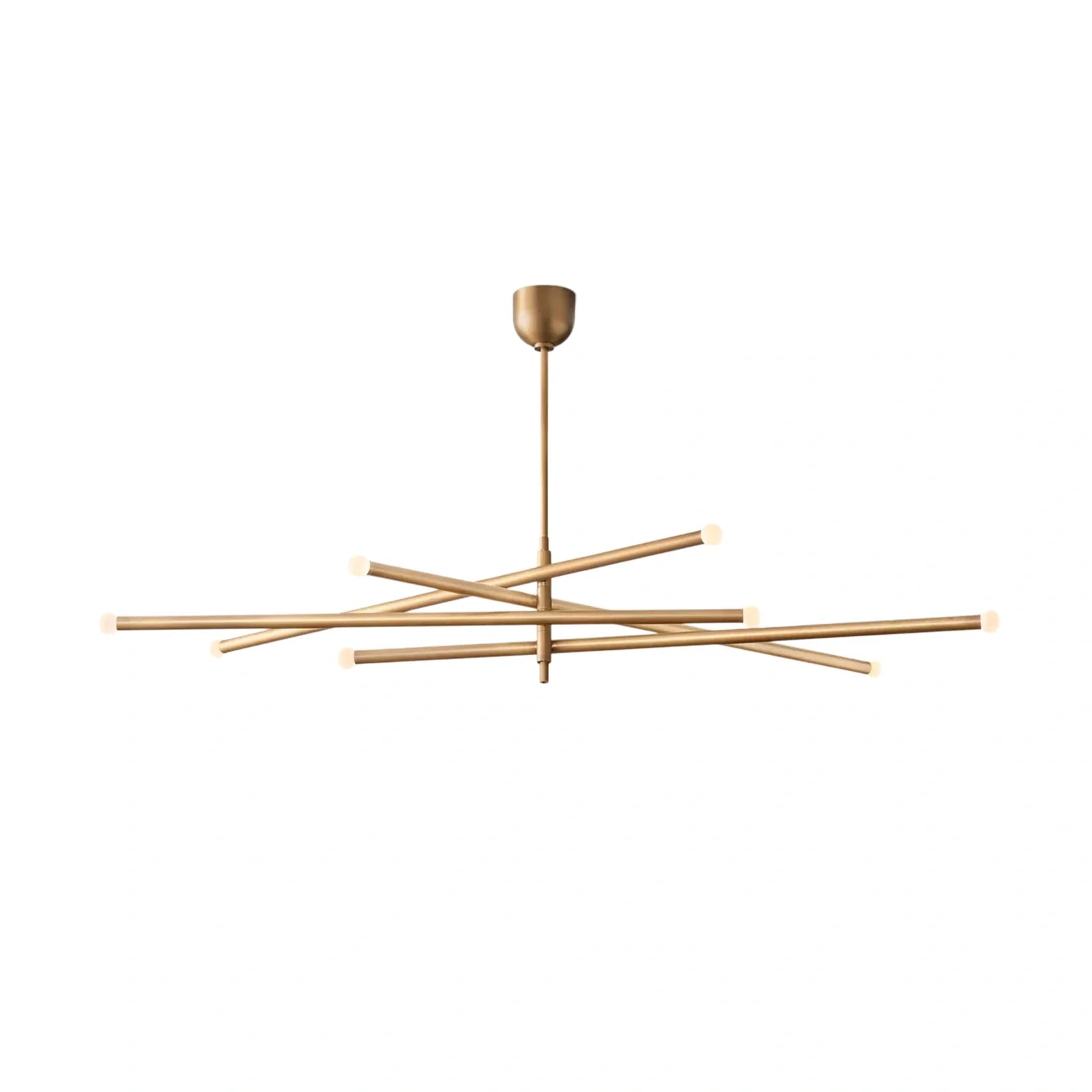 Inspired by mid-century Italian minimalism, the Rousseaw pendant lamp offers a modern take on clean shapes and bold silhouettes. The slender arms are capped by etched glass globes that contain LED bulbs, which emit a warm, filtered light when lit, adding a minimalist touch.