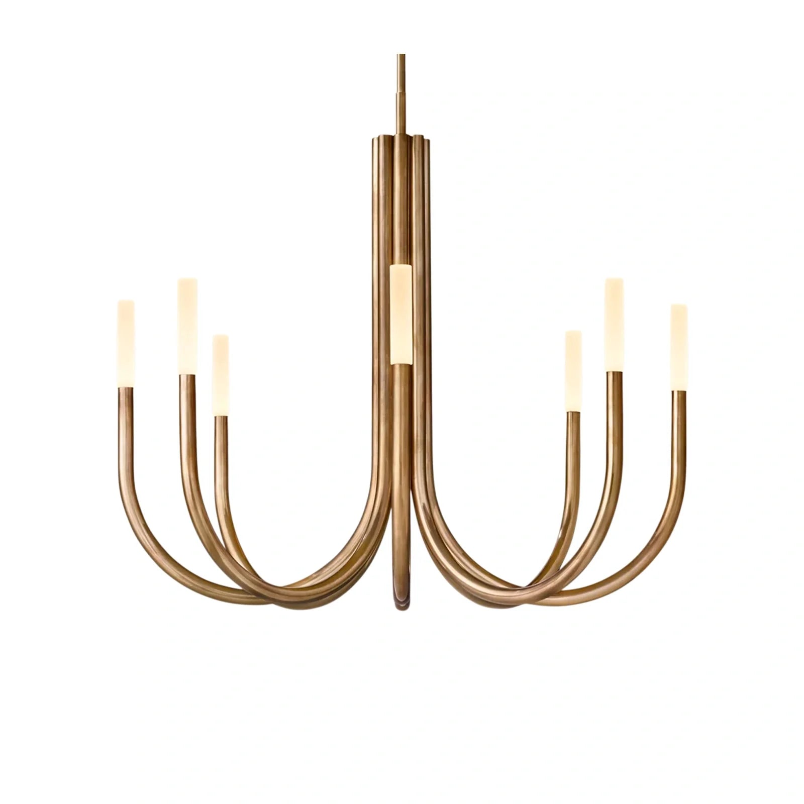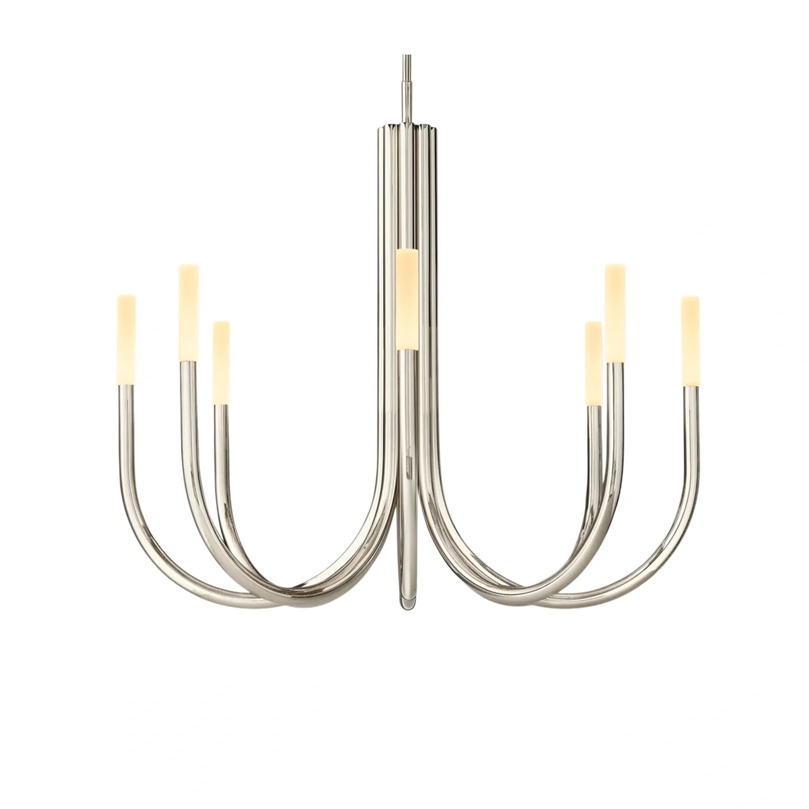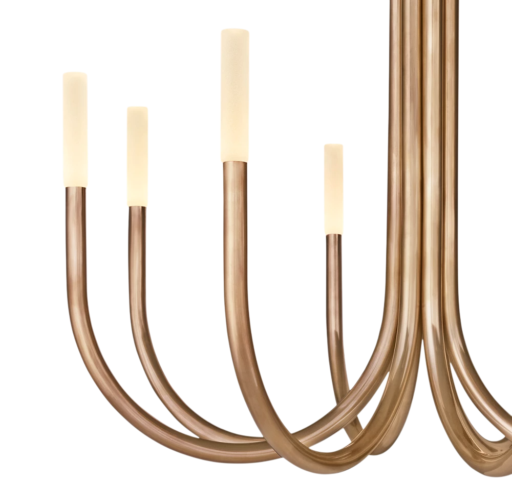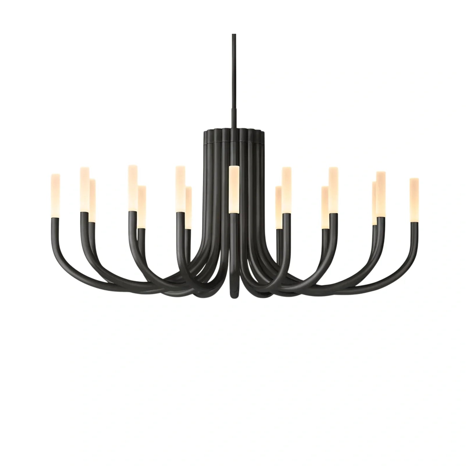 Inspired by mid-century Italian minimalism, the Rousseaw pendant lamp is a modern interpretation of simple shapes and bold silhouettes. Its elegant, soaring arms hold up an etched glass shade that houses an embedded LED bulb, emitting a warm, filtered glow when lit, a pared-back statement of style.